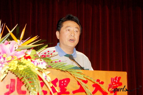 新浪體育訊 2006年12月15日,北京理工大學足球隊沖甲成功總結表彰大會在校內中教一層報告廳舉行,中國足協副主席南勇等各級領導出席表彰大會。學校決定,對北京理工大學足球隊進行通報嘉獎,并給予總計40萬元的獎學金、獎教金的物質獎勵,各級領導和金志揚總教練、隊員代表等發言。明年北京理工大學足球隊將繼續征戰在中甲的主戰場,其如何亮相及表現如何將成為足球界和各大媒體的焦點。圖為金志楊在會上發言。