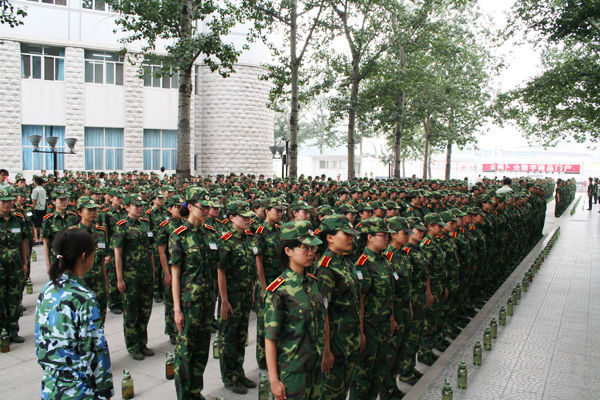 北京理工大學(xué)2007年軍訓(xùn)工作于7月15日正式展開。參訓(xùn)學(xué)員共3053人。北京理工大學(xué)作為連續(xù)多年的高校學(xué)生軍訓(xùn)工作先進(jìn)單位,一直把軍訓(xùn)作為一項(xiàng)重要的教學(xué)環(huán)節(jié)來抓。為高質(zhì)量、高效率地完成今年的軍訓(xùn)任務(wù),北理工秉承軍工院校的傳統(tǒng)特色,總結(jié)歷年經(jīng)驗(yàn)教訓(xùn),分析現(xiàn)實(shí)環(huán)境需要及學(xué)員的具體情況,制定了《北京理工大學(xué)2007年學(xué)生軍訓(xùn)計(jì)劃》,認(rèn)真籌備,精心組織,取得了一定績(jī)效。圖為同學(xué)們?cè)谶M(jìn)行隊(duì)列訓(xùn)練。