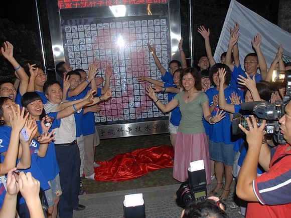 北理工老師和同學(xué)們在倒計時牌前共同見證了距2008年奧運會一周年這一激動人心的時刻,現(xiàn)場一片歡騰。