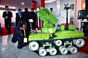 北理工學生研制的新型多用途反恐防暴機器人。 本報記者 浦峰 攝