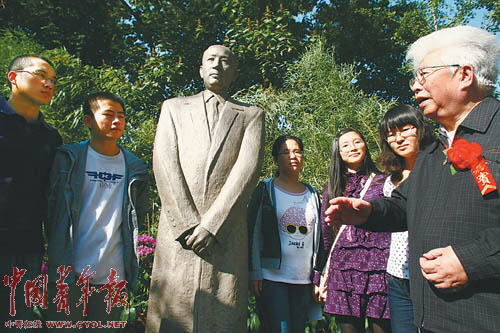 9月23日下午,北京理工大學教授、中國工程院院士周立偉在錢學森塑像前,為新生講述錢學森先生的愛國事跡。當天,北京理工大學舉行了錢學森塑像落成揭幕典禮。據介紹,在錢學森先生的直接指導下,北京理工大學設立了新中國第一批火箭導彈專業,該校豎立錢學森塑像,意在弘揚以錢學森先生為代表的中國科學家不畏艱險、勇攀高峰的科學探索精神。(本報記者 修伯明 攝)