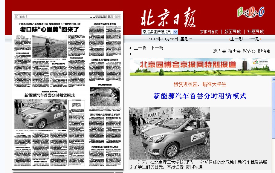 【北京日報】租賃進校園,瞄準大學生——新能源汽車首嘗分時租賃模式