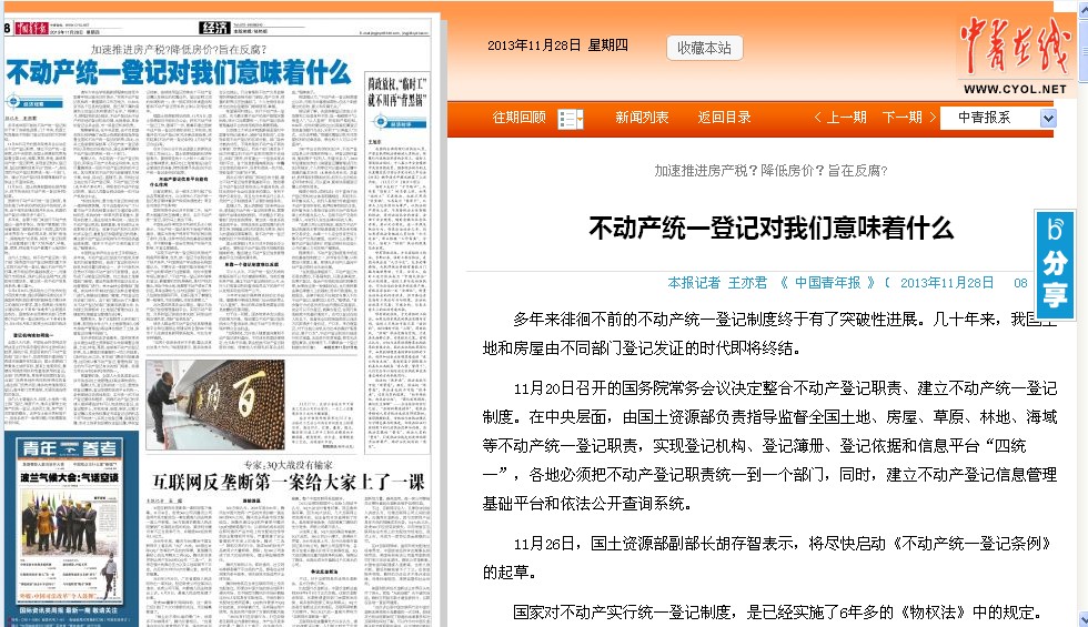 【中國青年報】不動產(chǎn)統(tǒng)一登記對我們意味著什么
