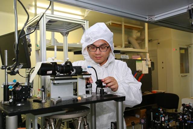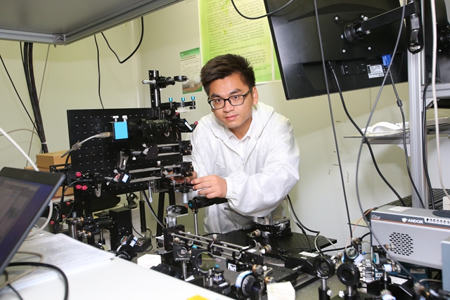 李博在實驗室進行光路校準操作