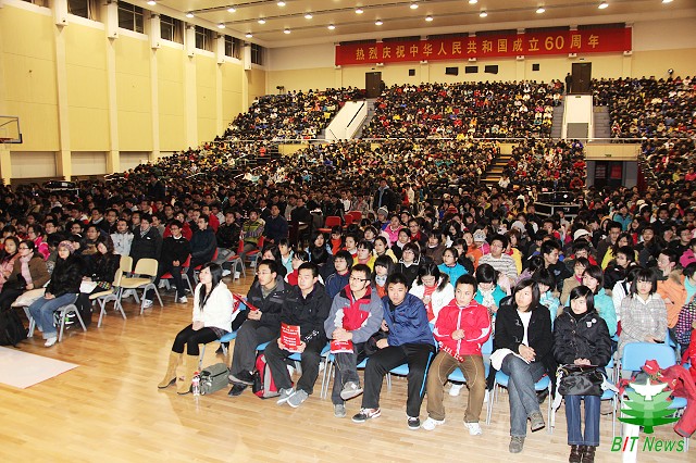 12月27日晚,北京理工大學(xué)第四屆“大學(xué) 青春 人生”優(yōu)秀學(xué)生事跡報(bào)告會在北京工商大學(xué)良鄉(xiāng)校區(qū)體育館隆重舉行。舉辦此次報(bào)告會對于貫徹落實(shí)學(xué)校十三次黨代會精神,傳承我校優(yōu)良學(xué)風(fēng)、校風(fēng)具有重要意義。北京理工大學(xué)黨委副書記、工會主席侯光明出席了報(bào)告會。報(bào)告會由學(xué)生工作處高陽特主持,2009級2000余名學(xué)生到場聆聽。