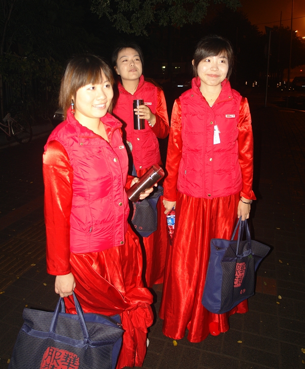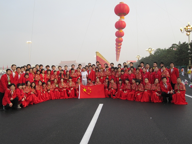 2009年10月1日凌晨3:00,有許多身著節(jié)日盛裝的同學(xué)陸續(xù)從北理工新1號學(xué)生公寓、11號宿舍樓、6號宿舍樓、碩博小區(qū)新5號樓、新2號樓等8個不同的學(xué)生公寓相繼出發(fā),這支特殊的演出隊伍在學(xué)校北門迅速完成集結(jié),乘車向第二集結(jié)地點進(jìn)發(fā)。在祖國60周年慶典這一天,他們將在天安門廣場的國旗下,為祖國縱情高歌。