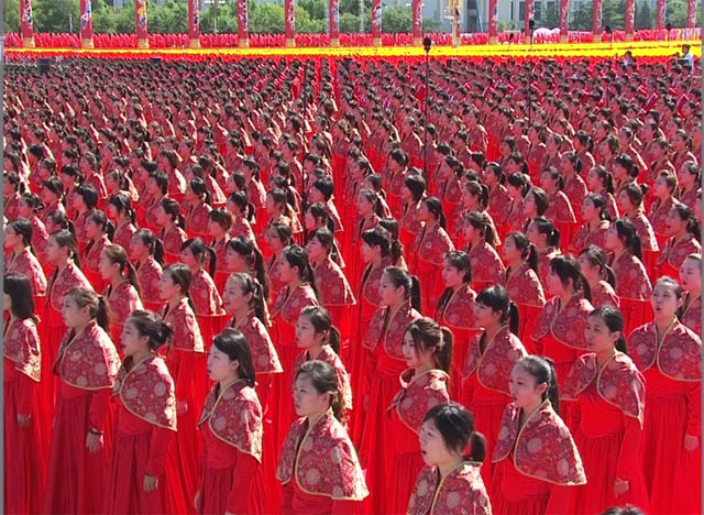 升旗儀式是整個慶典的開端,而我校的合唱團(tuán)的第一個“點位”恰恰就在離國旗不到5米的位置上,伴隨著解放軍聯(lián)合軍樂團(tuán)的雄壯的旋律,五星紅旗在合唱團(tuán)嘹亮的國歌聲中冉冉升起。在隨后長達(dá)1個多小時的閱兵式中,合唱團(tuán)成員沒有直接的演出任務(wù),但是所有成員必須在國慶慶典全部3個小時的時間里始終一動不動的站立在國旗之下,再加上試音階段的的時間合唱團(tuán)國慶當(dāng)天累計站立的時間超過了4個小時。演出結(jié)束后,信息學(xué)院2007級學(xué)生張晶的一句話道出了許多人的心聲:“閱兵式我們已經(jīng)看過多遍,已經(jīng)沒有太多新鮮感,在這種情況下站立就是堅持,但是一旦第一首表演歌曲《紅旗頌》的音樂響起時,突然全身又充滿了力量。”