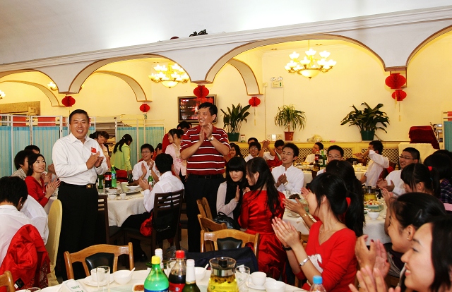 在隨后舉行的簡短而熱烈的“慶功宴”上,李和章副校長動情的說:“祝賀你們順利的完成了這項光榮的任務(wù),熱烈歡迎你們勝利凱旋,我非常羨慕大家,希望大家能夠牢記,能在國旗下為祖國六十周歲生日縱情高歌是一種莫大的榮譽,我們一定要珍惜這樣的榮譽,在今后的學(xué)習(xí)、工作和生活中,為祖國做出新的更大的貢獻(xiàn)!”