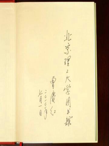 我校70周年校慶前夕,原國家副主席、我校校友曾慶紅同志向我校圖書館捐贈了最新出版的《關于黨的建設工作》一書并親筆題詞。