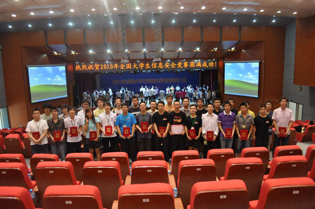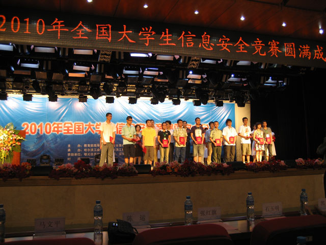 信安競賽喜訊歸,北理學子又奪魁!在剛剛結束的第三屆全國大學生信息安全競賽中,北京理工大學榮獲優秀組織獎,參賽作品“BinGo內嵌式服務器安全防護系統”勇奪全國一等獎,作品“開拓者主動防御系統,“Point軟件漏洞檢測系統”,“WSN安全通信技術研究與實現”和“安全視頻群組通信系統研究與實現”斬獲四個全國二等獎,“面向云計算的分布式網絡安全存儲系統”和“基于私密云計算的軍事保密身份認證系統”分別獲得全國三等獎,“Berry帳號管理系統”獲得全國優勝獎,軟件學院戴銀濤教授榮獲優秀指導教師獎。