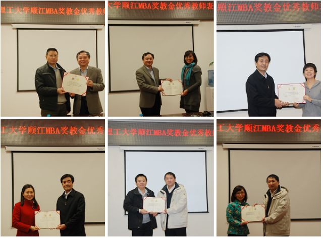 2011年11月28日,管理與經濟學院召開了2011年度順江MBA獎教金優秀教師表彰會,為優秀授課教師與優秀論文指導教師頒獎。管理與經濟學院院長魏一鳴、書記李金林、副院長朱東華、獲獎教師、MBA教育中心老師和學員代表出席了會議。會議由MBA教育中心副主任趙玉煥主持。