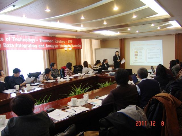 12月8日,由北京理工大學知識管理與數據分析實驗室倡議,北京理工大學、湯森路透科技集團及瑞典SKF集團公司聯合發起的科技數據集成與分析方法研討會在北京友誼賓館怡賓樓三層會議室順利舉行。來自北京理工大學管理與經濟學院、湯森路透科技集團、瑞典SKF集團公司、聯想集團、國家知識產權局、中國科技信息研究所、平安證券、中國人民大學、中央財經大學、首都經濟貿易大學、北京物質學院等高校科研人員和學生、企業界代表近30人圍繞多數據源集成與分析、企業技術創新及知識產權管理等主題展開深入的交流與探討。