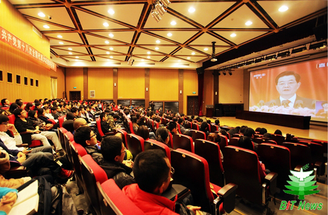11月8日,中國(guó)共產(chǎn)黨第十八次全國(guó)代表大會(huì)勝利召開。北京理工大學(xué)認(rèn)真組織廣大師生員工開展“十八大”開幕的觀看學(xué)習(xí)活動(dòng),從學(xué)校領(lǐng)導(dǎo)到普通學(xué)生均積極關(guān)注,通過觀看現(xiàn)場(chǎng)直播的方式認(rèn)真聆聽了胡錦濤總書記代表第十七屆中央委員會(huì)所作的工作報(bào)告。