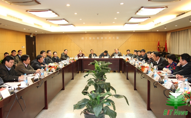 參觀結(jié)束后,雙方在國際教育交流大廈第一會議室舉行交流座談會,校長胡海巖院士代表學(xué)校向各兄弟院校領(lǐng)導(dǎo)的到來表示熱烈歡迎,簡要介紹了學(xué)校情況,并就高校如何確立自身發(fā)展目標(biāo)和路徑,以及人才培養(yǎng)、科學(xué)研究等方面工作與考察團(tuán)進(jìn)行了交流。四川大學(xué)黨委副書記周學(xué)東、哈爾濱工業(yè)大學(xué)副校長鄧宗全等分別代表考察團(tuán)發(fā)言,感謝北理工提供為大家提供經(jīng)驗(yàn)交流和開闊眼界的平臺和機(jī)會,希望兄弟高校之間能夠繼續(xù)加強(qiáng)聯(lián)系,協(xié)同合作,共同發(fā)展。