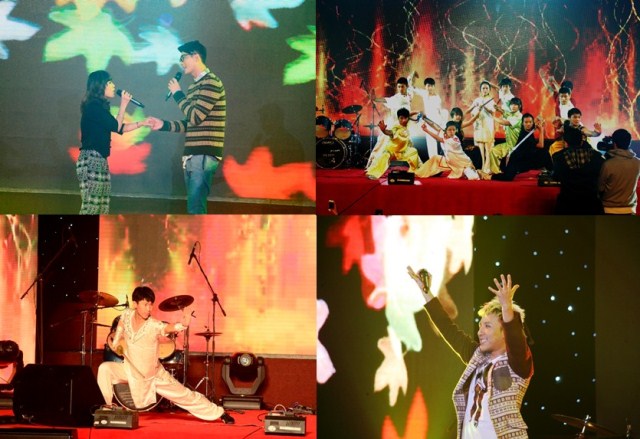 在今年的神秘嘉賓的獻唱中,鐘凱的一曲《你我一直都在》點燃全場,他與我校34屆深秋歌會總冠軍韓欣欣的合唱《你最珍貴》也讓觀眾們大飽耳福。北京體育大學武術(shù)學院團總支藝術(shù)團的武術(shù)表演也非常精彩,觀眾們無不拍手稱贊。第二位神秘嘉賓曹軒賓的出場讓本次深秋歌會達到了高潮,他不僅和同學們合唱了《可惜不是你》,一曲《如果你愛我》也是深情款款,撥動心弦。在互動的過程中,曹軒賓與主持人一起暢聊深秋歌會,幽默風趣的話語引得觀眾陣陣掌聲。