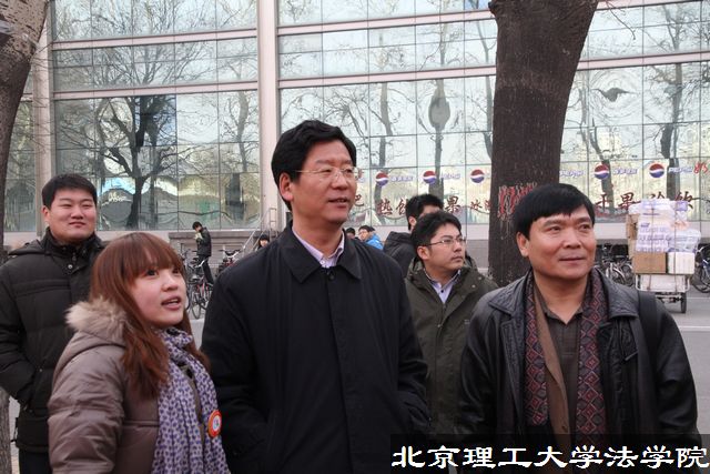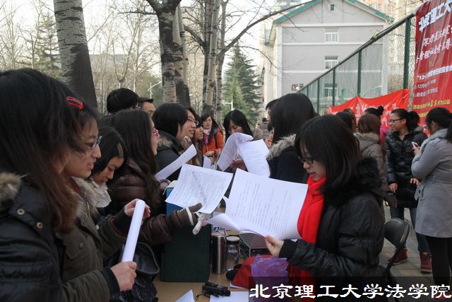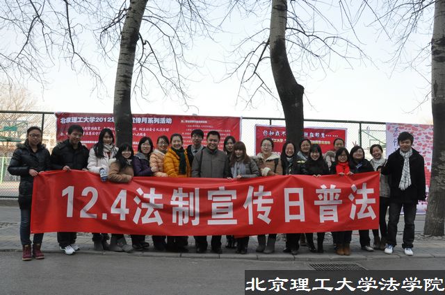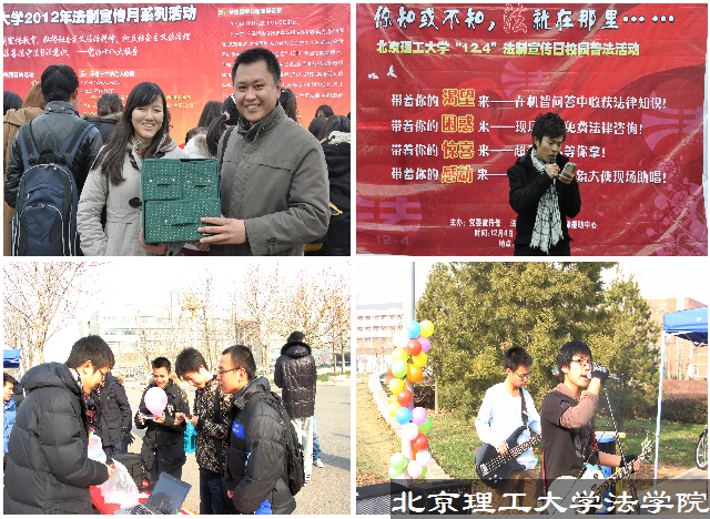“青青法學院,巍巍正義園,雄雄報國志,拳拳在心間……”12月4日中午11點,在中關村校區和良鄉校區同時唱響了這首悠揚動聽的法學院院歌,拉開了“北京理工大學2012年普法宣傳月”的序幕。