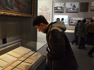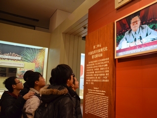 《復興之路》基本陳列共分中國淪為半殖民地半封建社會、探求救亡圖存的道路、中國共產黨肩負起民族獨立和人民解放歷史重任、建設社會主義新中國、走中國特色社會主義道路5個部分,通過1200多件(套)珍貴文物、870多張歷史照片,回顧了1840年鴉片戰(zhàn)爭以來中國人民在屈辱苦難中奮起抗爭,為實現民族復興進行的種種探索,特別是中國共產黨領導全國各族人民爭取民族獨立、人民解放和國家富強、人民幸福的光輝歷程。同學們?yōu)檫@一百多年的民族血淚史感慨萬千,更為這個民族的堅強與偉大而信心滿滿。中共中央總書記、中央軍委主席習近平和中央政治局常委李克強、張德江、俞正聲、劉云山、王岐山、張高麗等中央領導同志曾于11月29日前往國家博物館參觀《復興之路》展覽,在參觀過程中,習總書記發(fā)表了“空談誤國實干興邦”的重要講話。