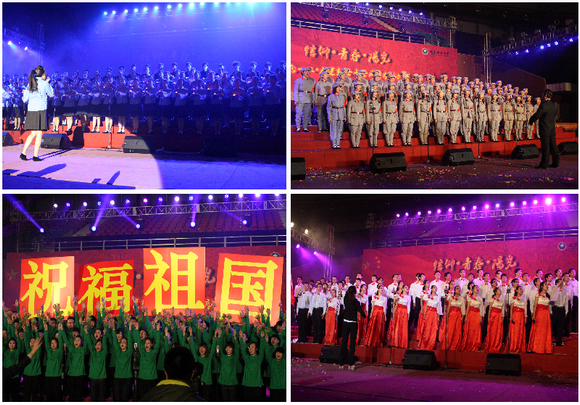 歌詠比賽在情景舞蹈《國民革命歌》中開場。比賽中,來自14支合唱隊的千余名師生按照歷史脈絡,先后演唱了《八月桂花遍地開》、《四渡赤水》、《在燦爛的陽光下》、《年輕的朋友來相會》、《走向復興》等膾炙人口的經典歌曲。