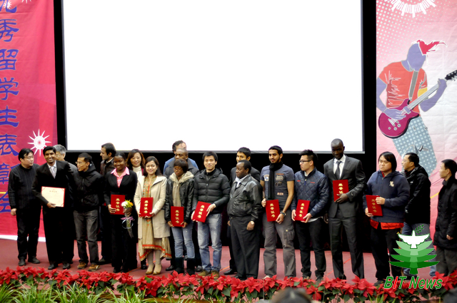 2012年12月18日星期二晚七點整, 北京理工大學優(yōu)秀留學生表彰大會暨迎新年聯(lián)歡晚會在中心教學樓一層報告廳隆重舉行,來自50多個不同國家和地區(qū)的500余名在校留學生與老師們、各學院和職能部處領導、外國駐華使領館代表歡聚一堂,共迎新春!