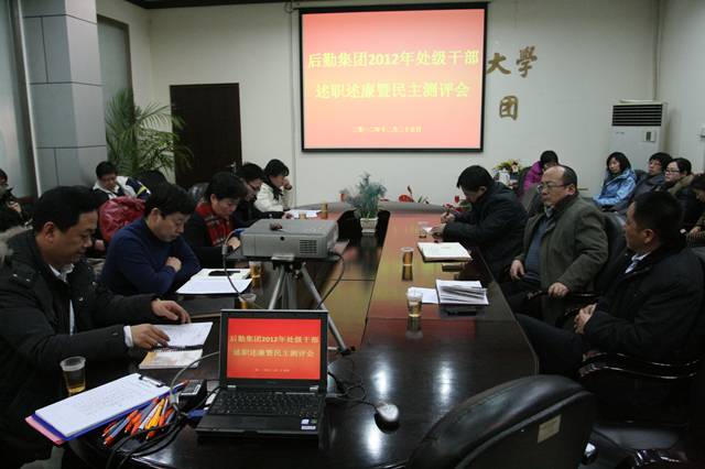 2012年12月25日下午,后勤集團于餐飲服務中心會議室召開2012年度處級干部述職述廉暨民主測評會。后勤集團處級干部、各部、中心職工代表共計43人參會,會議由后勤集團黨委書記巫后新主持。