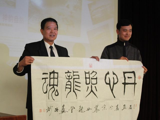 隨后,魏振武先生將自己的得意之作——書法《丹心照龍魂》與《紅龍》贈送給生命學院,對學校未來發展表示由衷的祝福與期望。