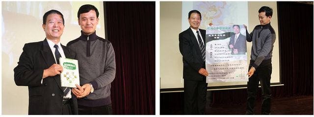 生命學院黨委副書記、副院長周連景代表所有現場人員贈送魏振武先生活動的海報和《校園植物志》表達對魏振武先生的敬意和謝意。