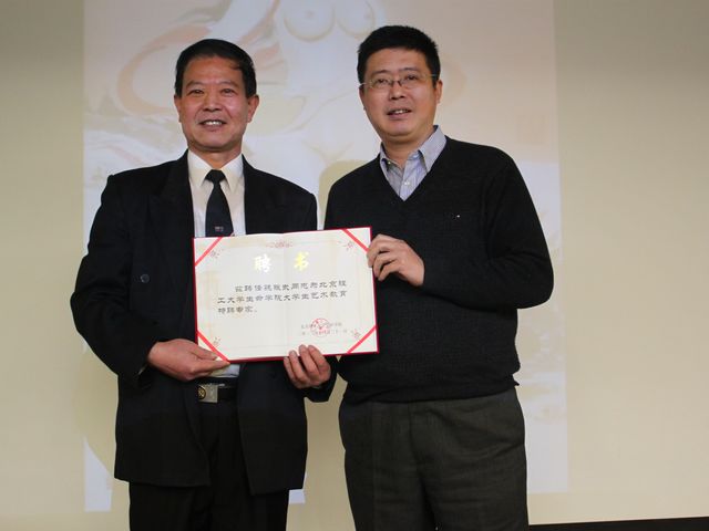 最后,生命學院黨委書記李漢軍給魏先生頒發了“生命學院大學生藝術教育特聘專家”聘書。魏先生對藝術文化有著深刻獨到的見解,先生對我校師生進行長期的幫助和指導將對我校營造優秀的校園文化,熏陶同學們的藝術氣質起到重要推進作用。