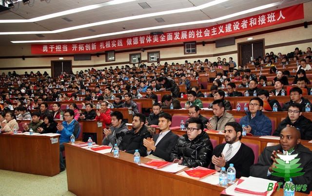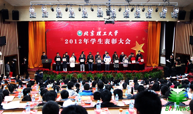 12月25日,北京理工大學2012年學生表彰大會在中關村校區中心教學樓報告廳隆重舉行。中國科學院院士、校長胡海巖,副校長趙平,紀委書記楊蜀康,副校長孫逢春、趙顯利,黨委副書記、副校長李和章,校長助理姚利民,學校辦公室、黨委宣傳部、教務處、校友會、研究生工作部、校團委等相關部處負責人,各學院主管學生工作的副書記、副院長,以及近500名獲獎學生和獲獎集體代表出席了大會。大會由黨委學生工作部部長楊海主持。