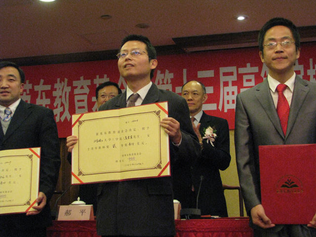 2012年12月26日上午,霍英東教育基金會第十三屆高等高等院校青年教師基金及青年教師獎頒獎大會在京舉行。全國政協副主席阿不來提·阿不都熱西提,中央統戰部副部長林智敏,教育部副部長郝平,國務院港澳辦副主任周波,霍英東教育基金會理事長霍震寰先生以及國際奧委會委員、香港奧委會主席、霍英東教育基金會副理事長霍震霆先生等出席了大會并為獲獎教師代表頒獎。我校馬宏賓教授應邀作為獲獎教師代表出席。