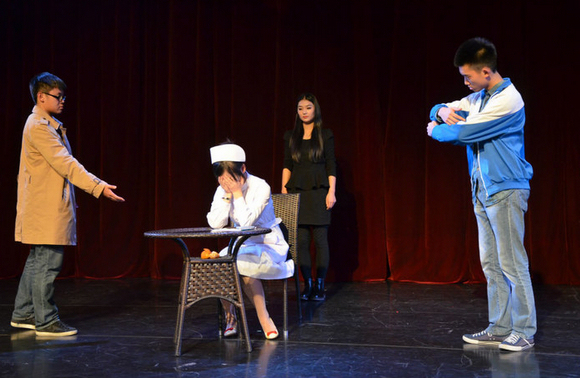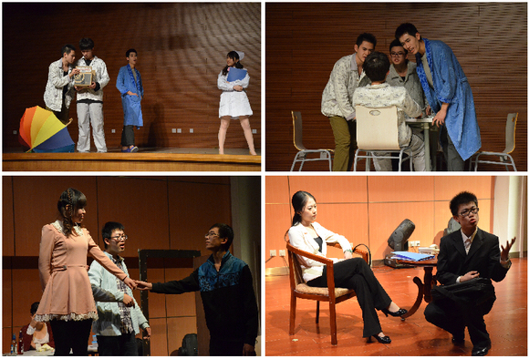 本學期太陽劇社共推出三部話劇:《我和我和他和他》、《再見,舊時光》、《病入膏肓》,演員們利用課余時間精心準備,認真努力排練,在話劇中加入自我思考和創(chuàng)新元素,在良鄉(xiāng)校區(qū)綜教演藝廳和音樂廳的演出場場爆滿,反響熱烈。所有的成功都不是一蹴而就,在光鮮的舞臺之下,、在觀眾的掌聲背后,是太陽劇社的同學們艱辛的付出。每天,在良鄉(xiāng)徐特立圖書館的地下室排練廳總能看見他們的身影,。因為戲劇多半需要配合表演,少一個人一幕戲就無法順利進行,于是同學們抓緊一切可能的時間排練,犧牲中午的休息時間,抽出周末的空閑時間,甚至在晚上九點四十下課后也跑到排練廳爭取再練一個小時,趕在宿舍關門前才匆匆回去。每一部戲都要經(jīng)歷將近兩個月的艱苦排練,從海選角色到熟記臺詞,從設計走位到舞美燈光,一部話劇從策劃到圓滿落幕,這不僅考驗著每一個演職人員的責任心,更是考驗著一個團隊的集體意識和凝聚力。
