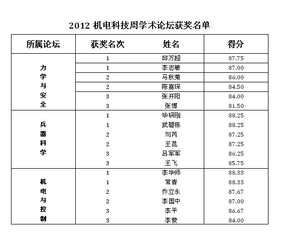 附件:2012機(jī)電科技周學(xué)術(shù)論壇獲獎名單