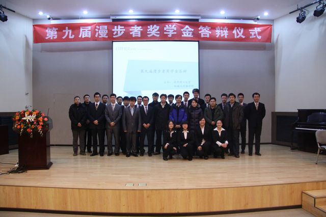 2013年1月10日晚北京理工大學第九屆漫步者獎學金答辯儀式在7號樓報告廳順利舉行。漫步者公司副總經理肖敏先生,漫步者公司市場部經理張文經先生,漫步者公司品質部高級經理李蘭強先生,北京理工大學黨委研究生工作部部長郝洪濤,北京理工大學黨委宣傳部副部長王征,北京理工大學學生工作處資助辦主任孫西艷,北京理工大學機械與車輛學院黨委副書記、副院長范文輝擔任評委出席了本屆答辯儀式。
