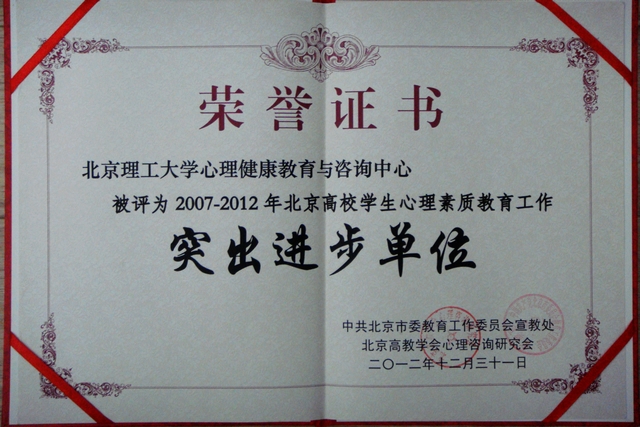 北理工榮獲“北京高校學生心理素質教育工作突出進步單位”稱號