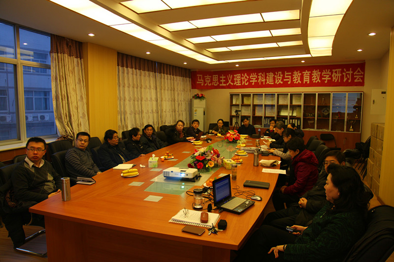 為貫徹落實國務院學位委員會《關于進一步加強高等學校馬克思主義理論學科建設的意見》(學位〔2012〕17號),進一步加強馬克思主義理論學科建設,為思想政治理論課提供有力支持,根據教育部社科司《關于在全國高校開展馬克思主義理論學科建設情況調研工作的通知》(教社科司函〔2012〕255號),2013年1月23日,馬克思主義理論教研部召開了“馬克思主義理論學科建設暨思想政治理論課教學研討會”。學校發展規劃處處長李鎮,研究生院常務副院長兼培養處處長盛新慶,學校發展規劃處副處長王茹,教務處副處長曹峰梅等領導出席會議。馬克思主義理論教研部主任張紅峻、人文與社會科學學院院長李健,馬克思主義理論教研部副主任李林英及馬研部全體教師參加了本次研討會。