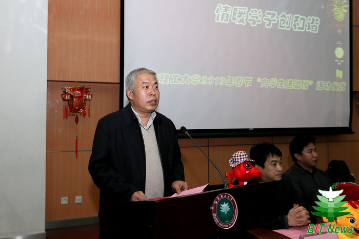 隨后,李和章發表了熱情洋溢的講話。他首先代表學校黨委和行政向與會同學及其家人致以新春誠摯的祝福,他指出:黨的十八大報告中明確要求“要努力辦好人民滿意的教育”、“大力促進教育公平”,一直以來,學校不斷完善資助體系,幫助家庭經濟困難的學生解決后顧之憂。2012年,家庭經濟困難學生有3253人次獲得國家和社會獎助學金,總金額為1100.7萬元,97%的家庭經濟困難的本科生獲得資助,完成了學校做出的“絕不讓一名學生因家庭經濟困難而輟學”的承諾。最后,他對學生們提出三點希望:一、希望同學們志存高遠,自強不息。經濟拮據,不是“性質”,不是“標簽”,更不是“類別”,它反而是我們奮斗的動力源泉,蘇軾說過“古之立大事者,不惟有超世之才,亦必有堅忍不拔之志”。希望大家自覺踐行“高遠的志向、精深的學術、強健的體魄、恬美的心境”的成才目標,持之以恒的奮斗,不遠的將來一定能成為“高帥富”和“白富美”。二、希望同學們勤勉篤學、腳踏實地。經濟困難,是人生中最小的和最容易克服的困難,相比起來,更可怕的是愚昧、懶惰、懦弱和無知。“業精于勤,而荒于嬉;行成于思,而毀于隨”,珍惜短暫的大學時光,做好自身建設和規劃,“腳踏實地、仰望天空”,做先知的人、勤奮的人、博學的人和厚重的人。三、希望同學們砥礪品行,胸懷天下。經濟條件不是評價人是否得到人們尊敬的標準,燦爛的人生應該用:高尚、善良、樂觀、自信、自強等詞匯來描述。奧黛麗赫本有一句話:“上帝給你一雙手,一只手是用來幫助自己,另一只手是用來幫助別人!”,希望大家堅持不懈,如古人云“窮則獨善其身,達則兼善天下”,做崇高的人,受人尊敬的人。