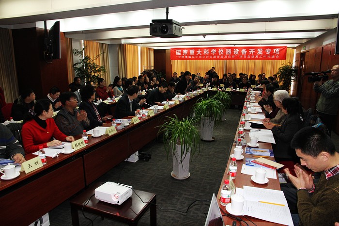 1月29日,國家重大科學儀器設備開發專項“空間多指標生物分析儀器開發與應用”項目啟動及工作推進會在北京順利舉行。科技部條財司吳學梯副司長、孫增奇處長、工信部科技司李力副司長、范書建處長、中科院大連生化研究所張玉奎院士、北京理工大學周立偉院士、北京理工大學楊樹興副校長、項目監理組和“兩組一委”(項目技術組、項目總體組和項目用戶委員會)32位專家以及項目牽頭單位北京理工大學財務處任世宏處長、人事處韓寶玲處長、國資處曲大成處長、實設處史天貴處長、科研院張瑜部長、生命學院李漢軍書記、唐曉英副院長等項目組骨干成員共計70余人參加了會議。會議由范書建處長、張玉奎院士共同主持。