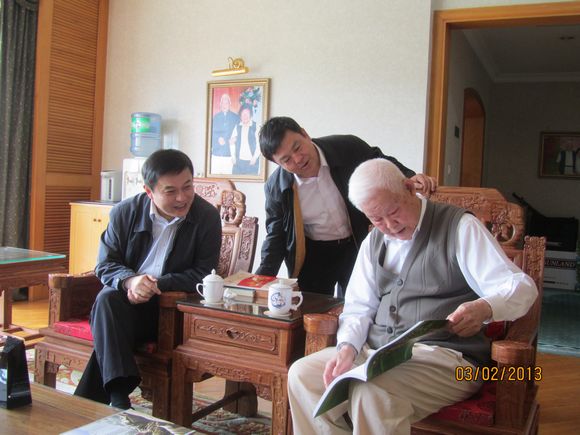 李鵬學長在夫人朱琳的陪同下接見了胡海巖校長一行,李鵬學長身體健康,精神矍鑠,見到母校來訪的同志們十分高興。李鵬學長一邊翻看胡海巖校長贈予的《北京理工大學校友風采》一書,一邊深情的回憶起在母校學習和生活的情景,回憶起當年延安自然科學院師生在非常艱苦的辦學條件下團結(jié)一致、執(zhí)著追求、不懈奮斗、抗戰(zhàn)報國的點點滴滴,并與胡海巖校長等一道追溯了學校七十多年來的辦學歷程,期望學校為中國共產(chǎn)黨在探索中國高等教育實踐的道路上再立新功。