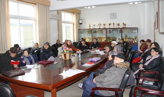 離休四支部把召開(kāi)“學(xué)習(xí)黨的十八大報(bào)告座談會(huì)”作為一次主題黨日活動(dòng),支部離休黨員們不懼嚴(yán)寒有17名離休干部黨員到會(huì)。支部書記趙峰明主持座談,他要求支部黨員要精讀原文,進(jìn)一步準(zhǔn)確領(lǐng)會(huì)十八大精神,把十八大精神的學(xué)習(xí)作為長(zhǎng)期的任務(wù)。原人文學(xué)院教授單書巖老師說(shuō):“報(bào)告內(nèi)容豐富,值得一讀,要好好讀,認(rèn)真讀!讀后提高了認(rèn)識(shí)、開(kāi)闊了眼界。”單老師在座談會(huì)上做了“從三個(gè)‘總’看十八大報(bào)告”的專題發(fā)言,詳細(xì)解讀了自己學(xué)習(xí)十八大報(bào)告的心得體會(huì)。