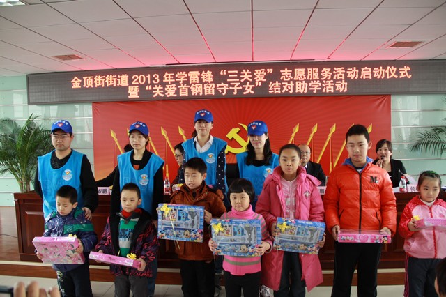 3月2日,機(jī)械與車輛學(xué)院志愿者來到北京市石景山區(qū)金頂街街道,在“關(guān)愛首鋼子女,給留守兒童送溫暖”獻(xiàn)愛心活動中,將募集到的慰問品贈送給了那里的孩子們,鼓勵他們好好學(xué)習(xí),努力成才為祖國建設(shè)做貢獻(xiàn)。3月5日,“首鋼關(guān)愛”項目推進(jìn)暨“學(xué)雷鋒”青年志愿服務(wù)活動啟動儀式在石景山區(qū)老山街道活動中心隆重舉行,志愿者們現(xiàn)場接受了由石景山團(tuán)區(qū)委贈送的錦旗。自首鋼集團(tuán)搬遷以來,由于首鋼職工工作時間忙碌和地點遠(yuǎn)離家庭,很多首鋼子女成為了留守兒童。2012年5月起,機(jī)械與車輛學(xué)院的眾多志愿者積極參加“首鋼關(guān)愛”行動,用自己的青春活力感染小朋友,把自己的知識傳遞給小朋友,積極關(guān)注和引導(dǎo)孩子們健康成長,得到了當(dāng)?shù)厝罕姷母叨仍u價。