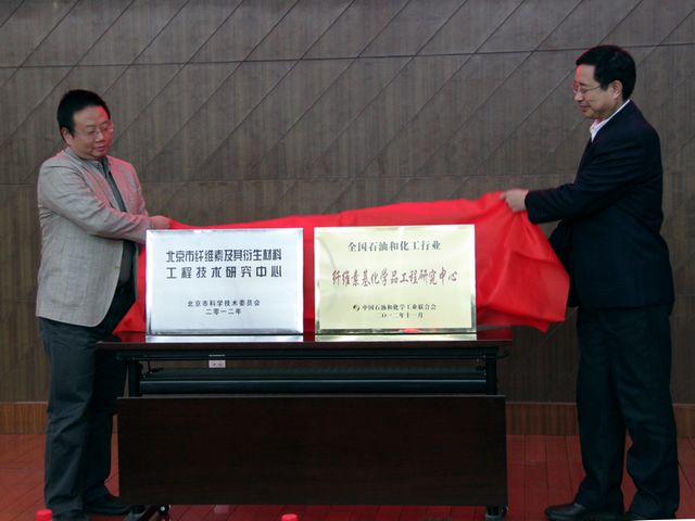 日前,“北京市纖維素及其衍生材料工程技術研究中心”揭牌儀式在中關村校區圖書館一樓報告廳隆重舉行。全國石油與化工行業聯合會授權《全國石油和化工行業纖維素基化學品工程技術研究中心》掛牌儀式也同時舉行。