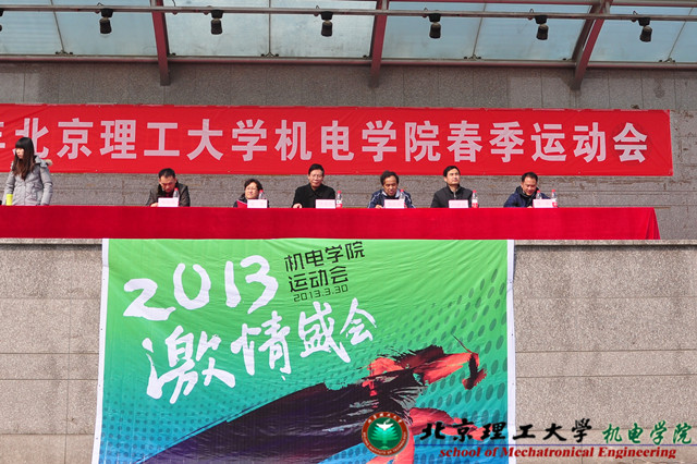 2013年3月30日上午9點(diǎn)30分,北京理工大學(xué)機(jī)電學(xué)院2013學(xué)年春季運(yùn)動(dòng)會(huì)在中關(guān)村校區(qū)主體育場(chǎng)正式拉開(kāi)帷幕。機(jī)電學(xué)院院長(zhǎng)焦清介、學(xué)院黨委書(shū)記栗蘋(píng)、學(xué)院副院長(zhǎng)張慶明、學(xué)院副院長(zhǎng)門(mén)建兵、學(xué)院副院長(zhǎng)副書(shū)記楊瑞偉老師、學(xué)院副書(shū)記陳軍出席了本次運(yùn)動(dòng)會(huì)。