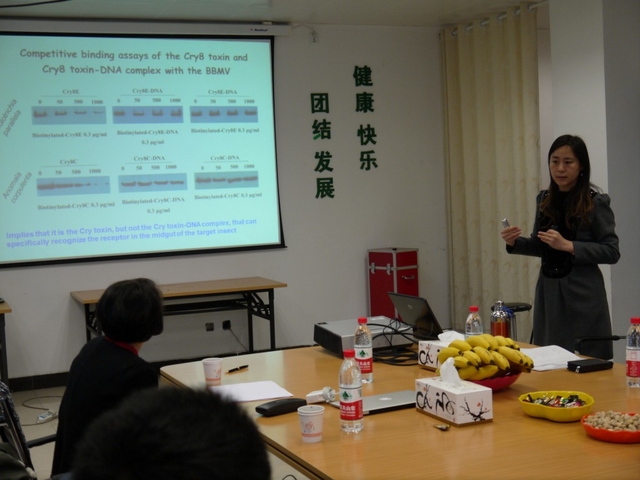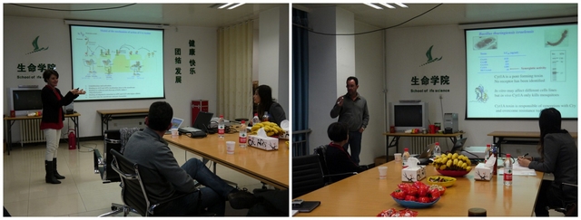 2013年3月27日,應生命學院郭淑元老師邀請,墨西哥國立自治大學生物技術研究所Alejandra Bravo教授和Mario Soberón教授為北理工師生帶來了題為“Mode of action of Cry toxins and synergism between Cry and Cyt proteins”的報告。這次學術報告會由郭淑元老師主持,生命學院教師張建麗教授、周曉宏博士等及部分研究生參加了報告會。