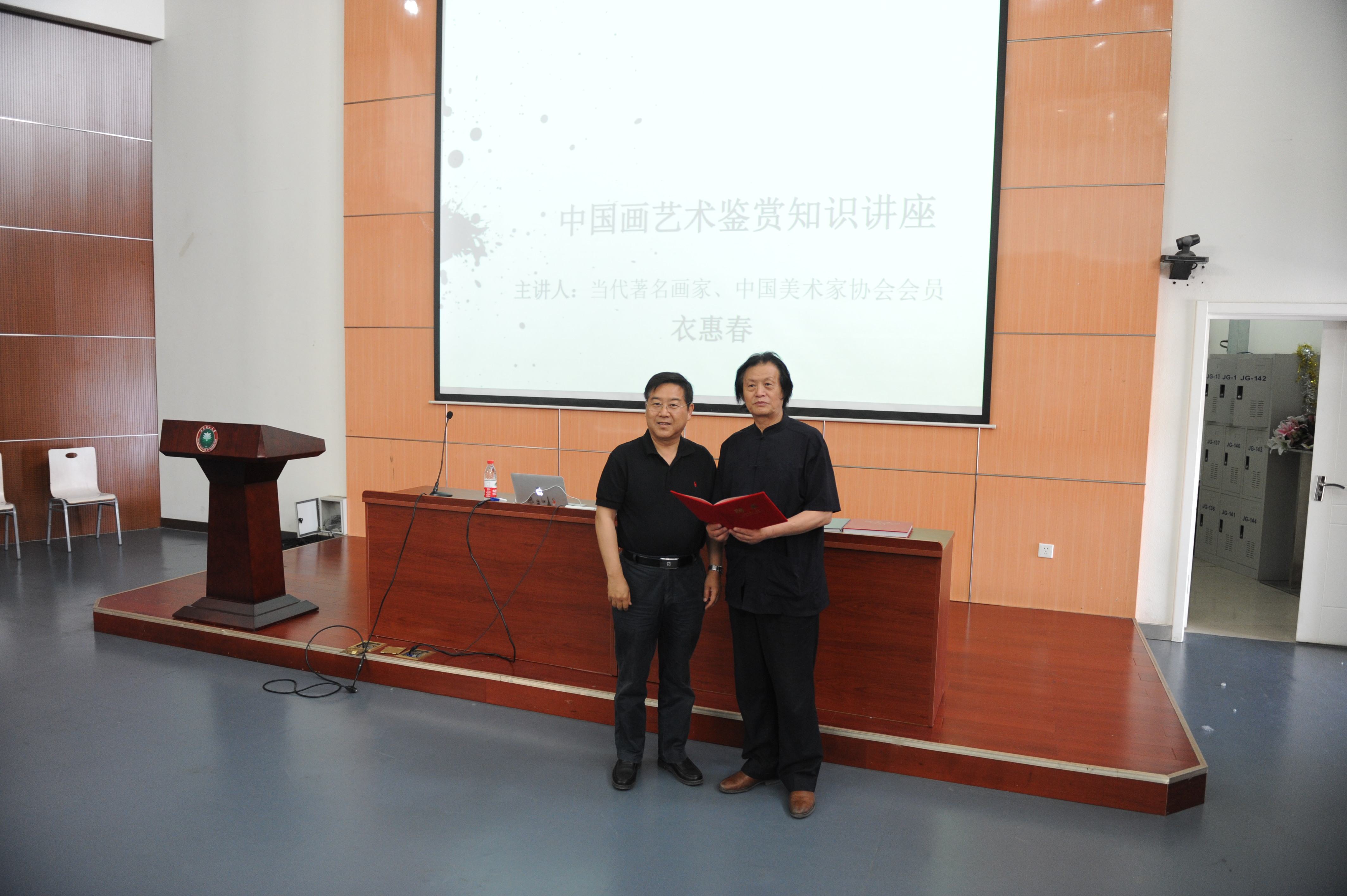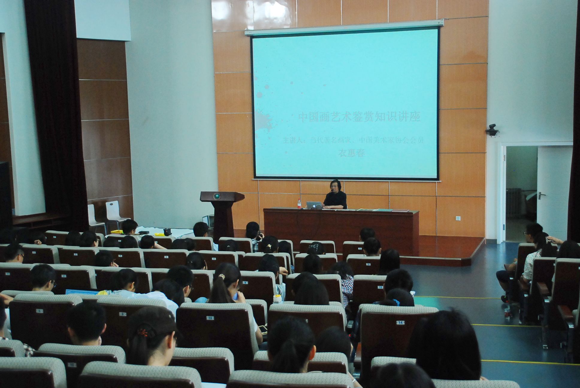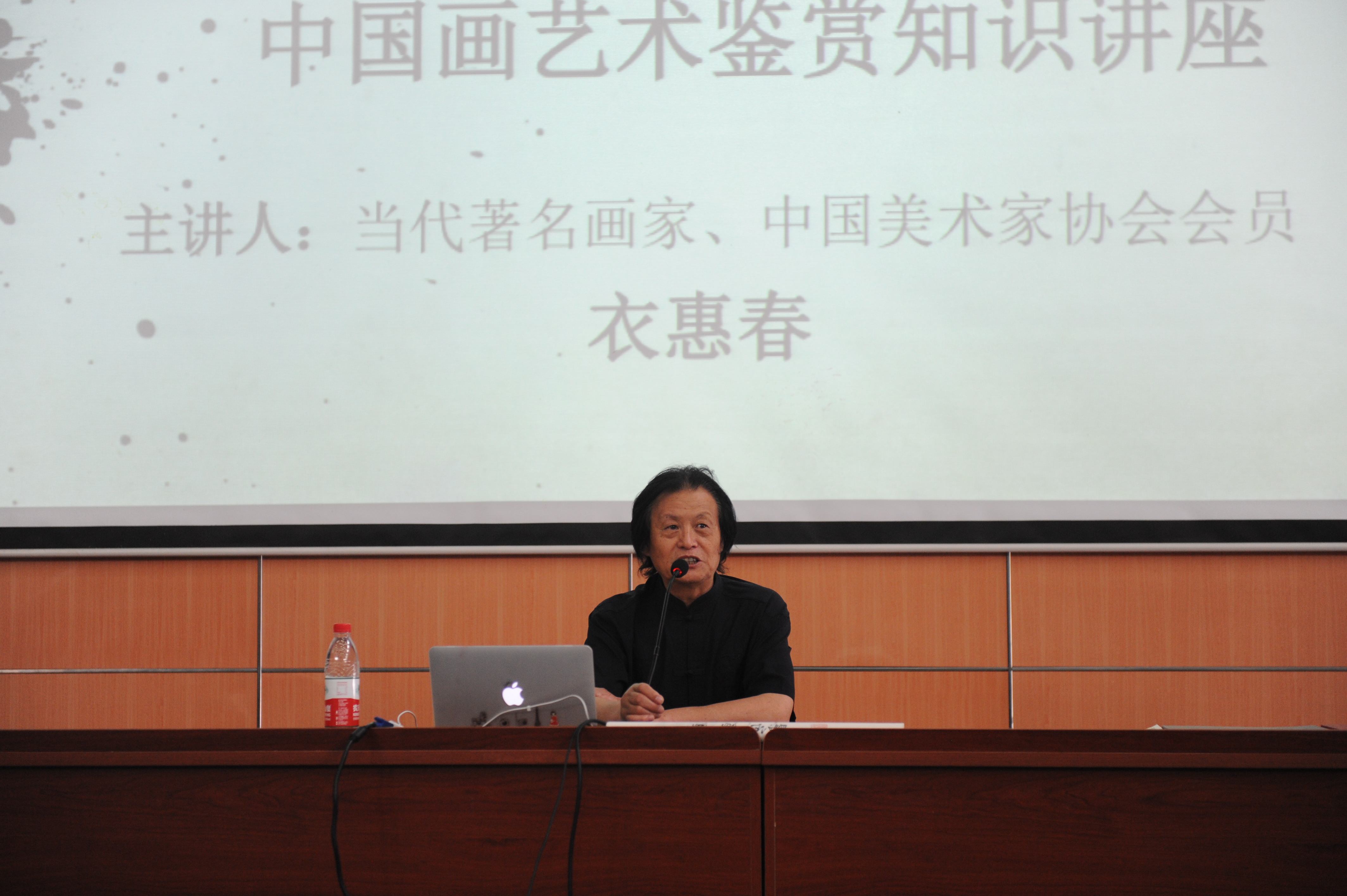 2013年5月14日下午,當代著名畫家、中國徐悲鴻畫院藝術委員會副主任衣惠春先生應北理工人文與社會科學學院邀請,在良鄉校區綜合教學樓報告廳為師生帶來《中國畫藝術鑒賞》書畫藝術講座。著名畫家衣陽女士,人文學院黨委書記張紅峻教授,黨委副書記、副院長徐貴寶老師與良鄉校區兩百多名師生共同聆聽了此次講座。講座由人文學院團委書記孫碩老師主持。