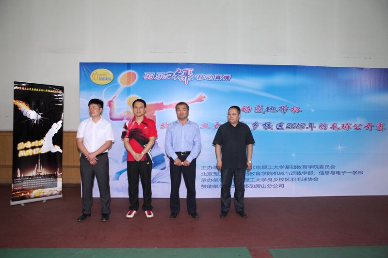 5月14日下午,由共青團北京理工大學基礎教育學院委員會、基礎教育學院機械與運載學部、信息與電子一學部聯合舉辦的“動感地帶杯”北京理工大學良鄉校區2013年羽毛球公開賽成功開幕。北京理工大學校長助理、督辦室主任李燕月,北京理工大學校長助理、良鄉校區管委會主任姚利民,基礎教育學院黨委副書記、副院長叢磊,基礎教育學院團委書記、校團委副書記肖坤,北京移動房山分公司副總經理孫大勇出席活動。