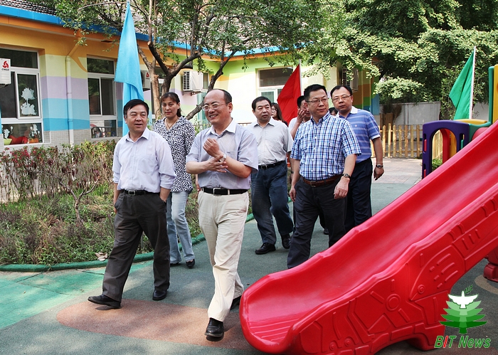 5月31日下午,北京理工大學副校長楊賓、副校長楊樹興,以及校辦主任郝志強、出版社社長林杰等,在后勤集團總經理李晉平、集團黨委書記巫后新、副書記姜金鳳的陪同下,來到理工大學幼兒園看望孩子們,為孩子們送來節日的問候。