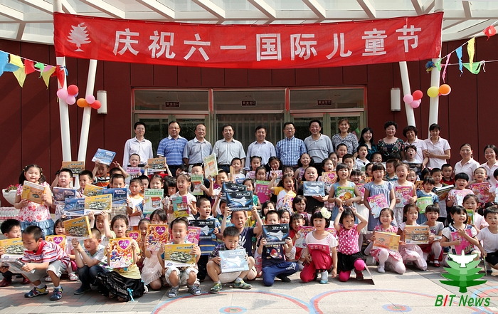 參觀結束后,在幼兒園操場上,校領導將我校出版發行的2千余冊少兒圖書,捐贈到孩子們手中,并祝孩子們兒童節快樂!孩子們手捧著新書,興奮不已,紛紛感謝叔叔、阿姨們的關愛。幼兒園的全體教職員工在感受學校各級領導的關心、支持中,也更堅定了做好教育服務,培育好祖國下一代的信念。