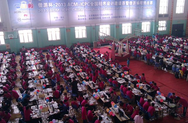2013年中國大陸區(qū)ACM-ICPC地區(qū)邀請賽于5月份全面開戰(zhàn),南京邀請賽于5月19日,通化邀請賽及長沙邀請賽于5月26日在三地的三所高校分別舉行。我校由基礎(chǔ)教育學(xué)院牽頭組織,在計算機(jī)學(xué)院、軟件學(xué)院的大力支持下,派出由本科四個年級同學(xué)組成的六支隊伍參賽,與來自全國百余所高校的三百多支參賽隊進(jìn)行角逐。