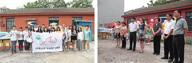 2011年,北理工在井陘礦區(qū)第一小學(xué),即1948年我校輾轉(zhuǎn)華北辦學(xué)舊址樹立“華北工學(xué)院辦學(xué)舊址”紀(jì)念碑。之后,學(xué)生工作處定期組織學(xué)生黨員骨干與井陘礦區(qū)、礦區(qū)一小等單位開展共建活動。今年六一前夕,在北理工宣傳部、校史館、學(xué)生工作處及宇航學(xué)院、機(jī)車學(xué)院的協(xié)助下,礦區(qū)一小在我校辦學(xué)舊址處建成了“北理文化園”,增加了學(xué)校的詳細(xì)介紹、模型展示廳等,建造了假山、噴泉、竹林等景觀,命名為“中國夢”主題文化園,借以在小學(xué)中營造北理工文化氛圍,使小學(xué)生們從小接受北理工文化的熏陶,促使他們養(yǎng)成努力學(xué)習(xí)、報(bào)國奉獻(xiàn)的精神。