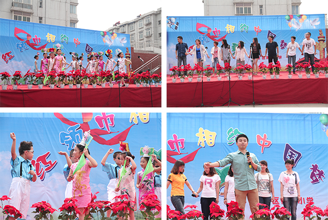 揭幕儀式后實(shí)踐團(tuán)成員參加了礦區(qū)一小慶六一“紅領(lǐng)巾相約中國夢”主題聯(lián)歡會活動,小學(xué)生們表演了時(shí)裝秀、現(xiàn)代舞、空竹、京劇等精彩節(jié)目。天真活潑的氛圍也感染了輔導(dǎo)員老師們,他們?yōu)楹⒆觽儽硌萘司臏?zhǔn)備的兩個(gè)節(jié)目——《百花齊放》和《童年》,受到小朋友們的歡迎。