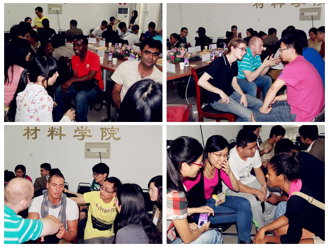 2013年6月5日下午,材料學院 “學術下午茶”分享沙龍第十三期— “六分鐘英語圈”在5號樓502-1成功舉辦。本期“學術下午茶”特邀北京理工大學、北京外國語大學、北京語言大學的十幾位外國留學生與我校同學交流互動,活動吸引了來自不同學院的數十名同學參加,給廣大同學搭建了英語溝通交流的平臺。